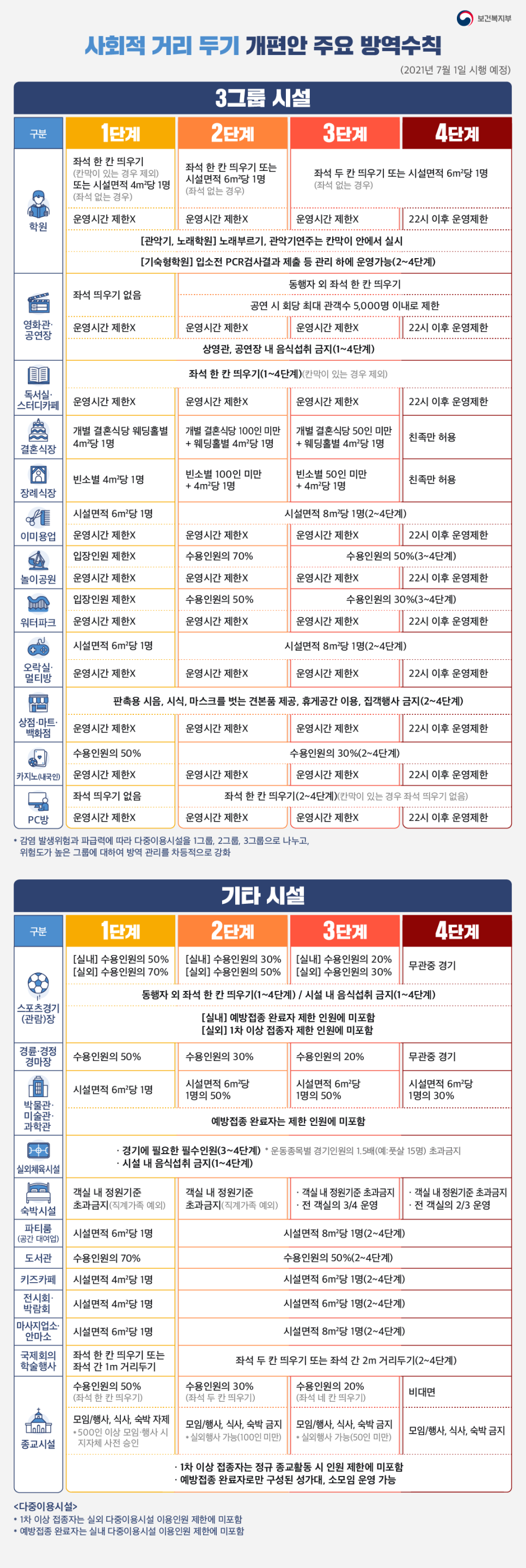 7월부터 거리두기 개편…인원 제한 어떻게 변하나. 코로나 거리두기 개편1.5단계 등 신설… 중대본 관계자는 거리두기 개편 시행에 따른 사적 모임 완화로 인한 모임 급증 등을 분산하기 위해서는 7월에 각종 대규모 모임이나 음주를 동반한 회식 등을 자제해 달라고 요청했다. 대전 사회적 거리두기 다음 달부터 2단계 적용되나. ⠀ 이미지를 통한 좌석 참고 부탁드립니다.